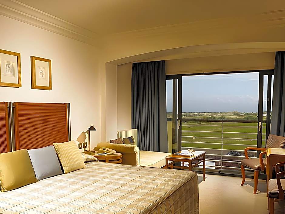 This room features full-height sliding windows and a balcony with views over La Moye Golf Course. There is a sofa as well as a complimentary daily newspaper, fruit bowl and Hildon mineral water. The marble private bathrooms have stylish fittings, bathrobes and slippers, and complimentary toiletries by Molton Brown.